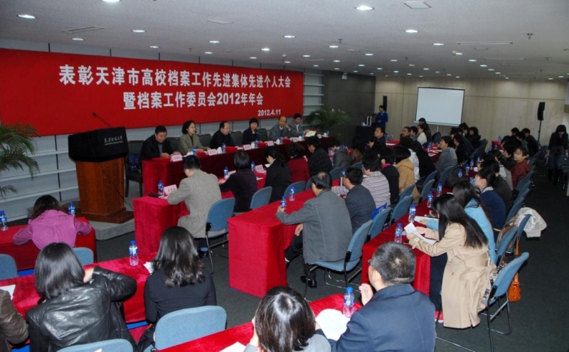 上午,表彰天津市高校档案工作先进集体、先进个人大会暨档案工作委员会2012年年会在天津财经大学召开。天津财经大学党委副书记张玲、天津高校档案工作委员会会长、市教委办公室主任连忠峰、市教委办公室副主任程国毅、天津财经大学党委办公室和校长办公室负责人以及天津市50余所会员高校的档案馆(室)负责人出席了会议。会议由天津高校档案工作委员会理事、天津师范大学档案馆馆长张维和主持。
